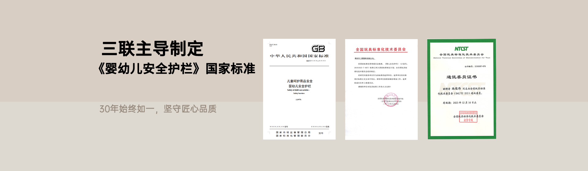 ? ? ? ? 近日,國家市場監(jiān)督管理總局、國家標準化管理委員會發(fā)布中華人民共和國國家標準公告(2025 年第 24 號),由瑞安市三聯(lián)塑料有限公司作為第四起草單位、公司產(chǎn)品經(jīng)理池俊偉擔(dān)任起草人的國家標準《兒童呵護用品安全 嬰幼兒安全護欄》(GB/T 46508-2025)正式獲批發(fā)布,并將于 2026 年 11 月 1 日起全面實施。這一標準的出臺,不僅填補了當(dāng)前嬰幼兒圍欄類目缺乏統(tǒng)